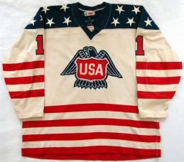 USA Hockey wore these jerseys from about 2001 through the end of 2004. A variation of this jersey was also worn by the U.S. Olympic Team in 2002 that won silver in Salt Lake City.