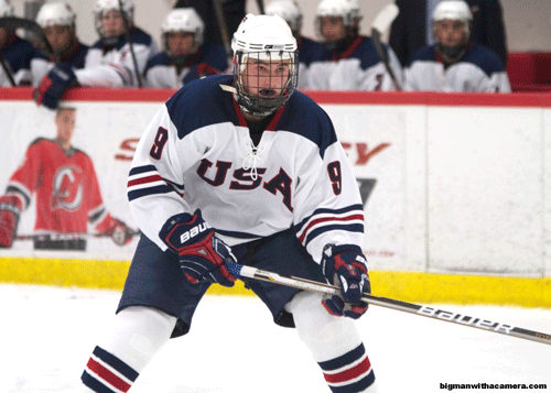 The U.S. does have a solid replacement in Connor Hurley, a forward who is splitting his time between Edina High School and the Muskegon Lumberjacks this season. Hurley’s birthday is on the draft cut off, so he’s eligible for the 2013 NHL Entry Draft and is a very intriguing prospect to watch. He skated in a few games with the U18s against colleges and showed off some really solid puck skills and skating ability. He’s the only player from outside the NTDP on this roster as the U18s are finally close to being fully healthy. Hurley still hasn’t made a college commitment, but is highly sought after.