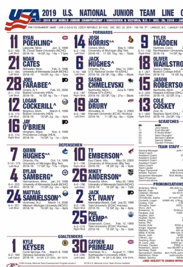 2019 Team USA World Junior Championship Roster: Team set after six cuts